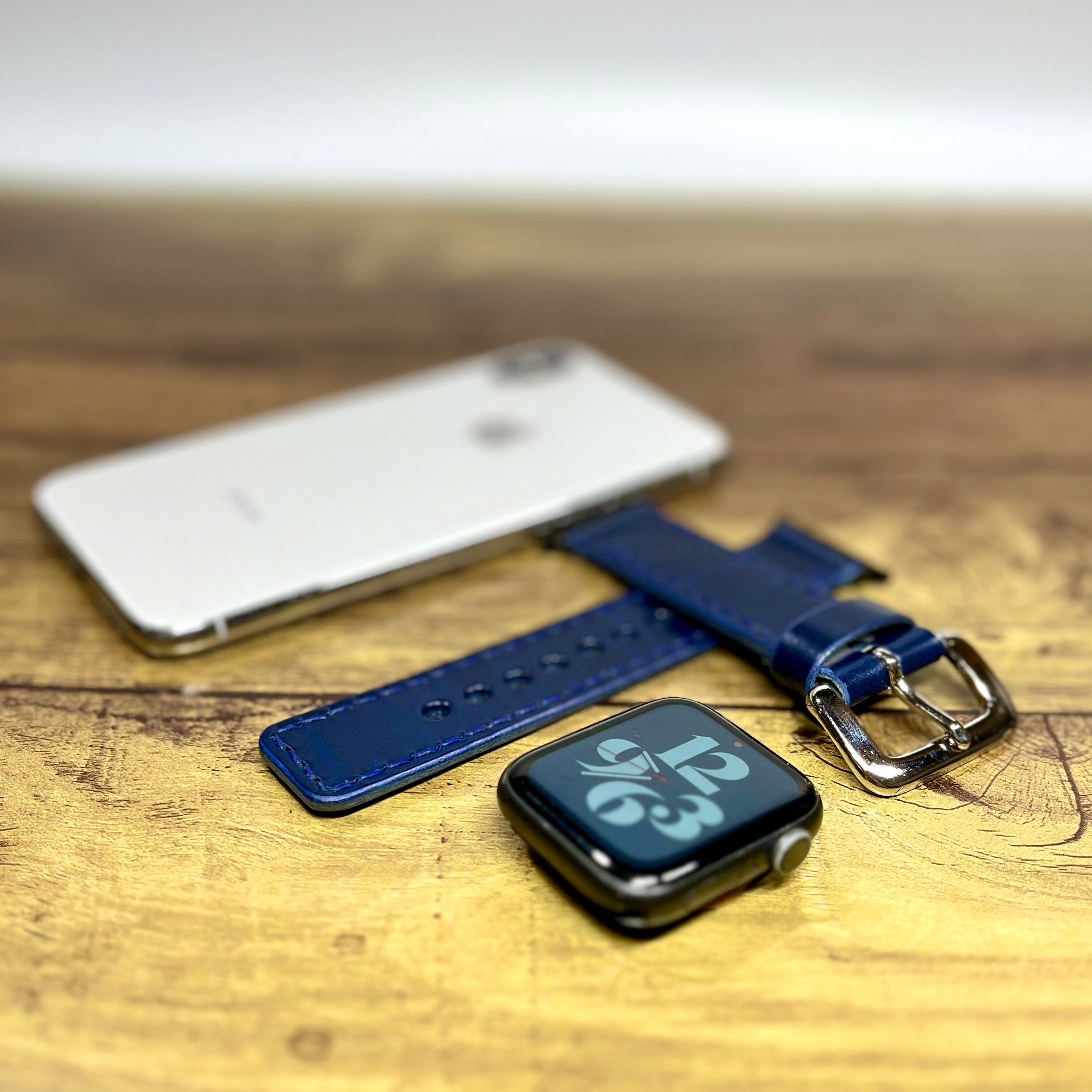 アップルウォッチのシンプルな外観に違和感なく馴染むレザーバンドをご用意致しました。
