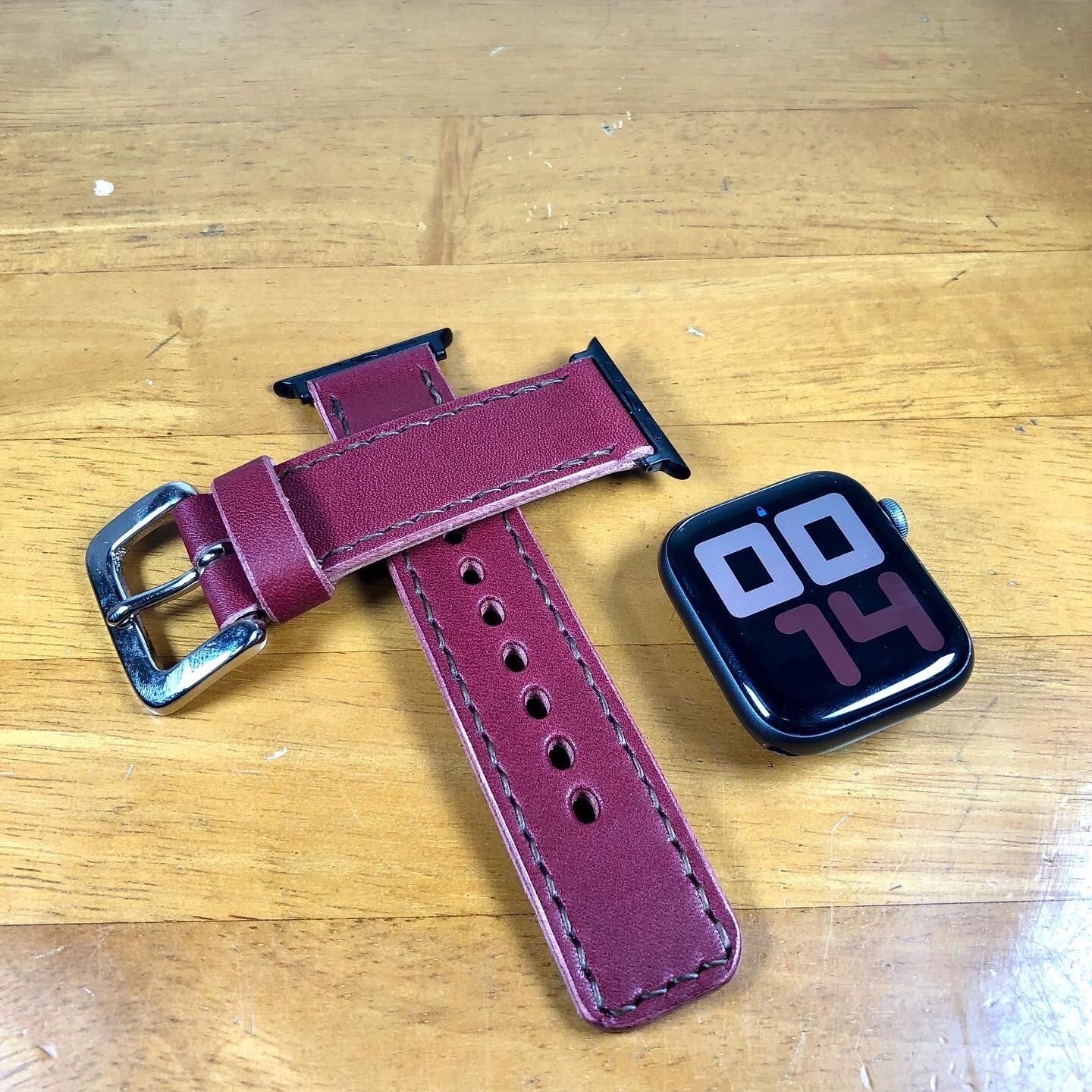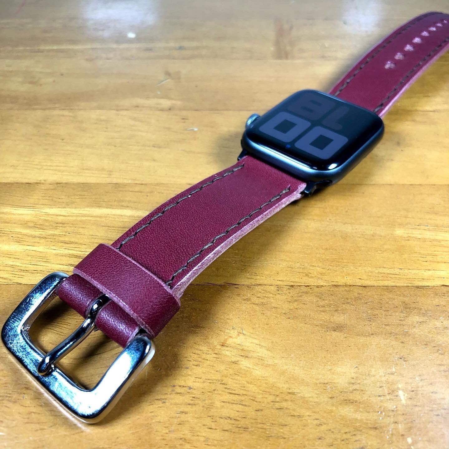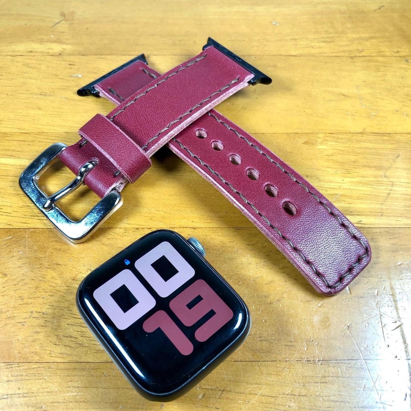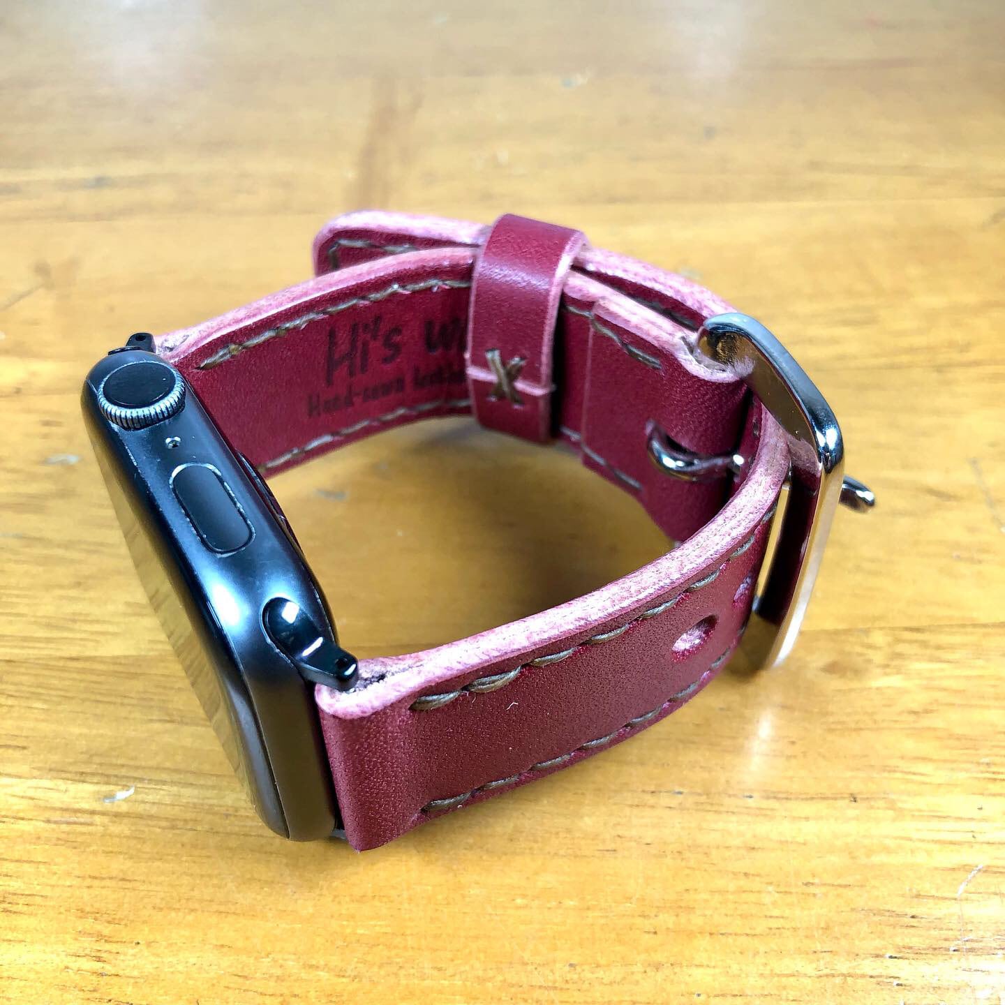 アップルウォッチのシンプルな外観に違和感なく馴染むレザーバンドをご用意致しました。